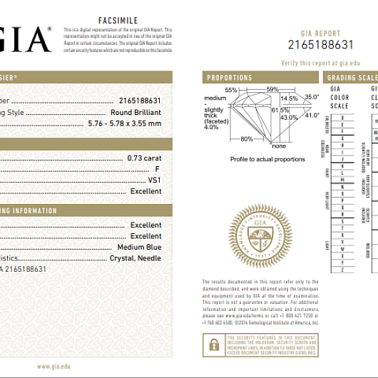 Природный бриллиант 0.73 Ct, F/VS1 "Круг" GIA