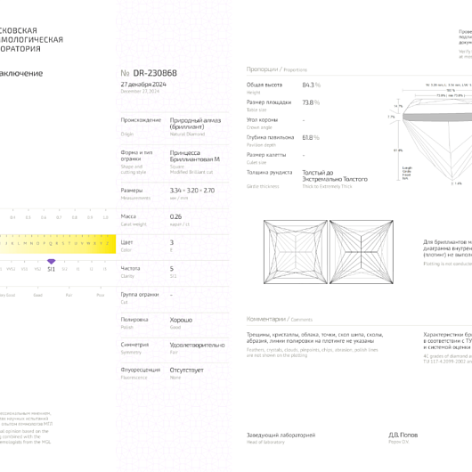 Бриллиант 0.26 Ct E / SI1 "Принцесса" MGL