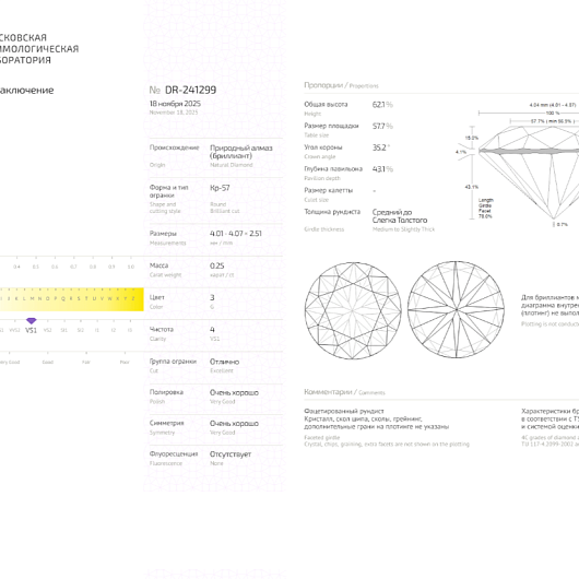 Природный бриллиант 0.25 Ct, G/VS1, "Круг"
