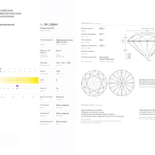 Природный бриллиант 0.30 Ct, G/SI1, "Круг" MGL