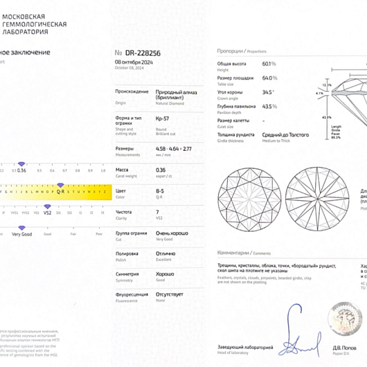 Природный бриллиант 0.36 Ct, Q-R/VS2, "Круг" MGL