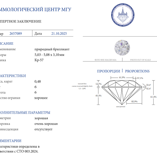 Природный бриллиант 0.48 Ct H/VS2 "Круг"