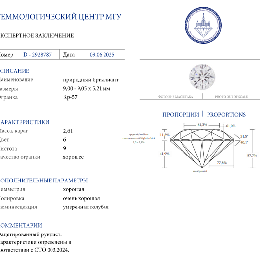 Природный бриллиант 2.61 Ct I/I2 "Круг"