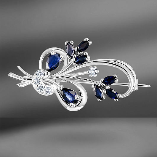 Золотая брошь с сапфирами 1.60 Ct и бриллиантами