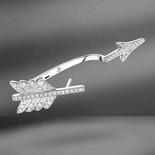 Золотая моносерьга с бриллиантами 0.11 Ct