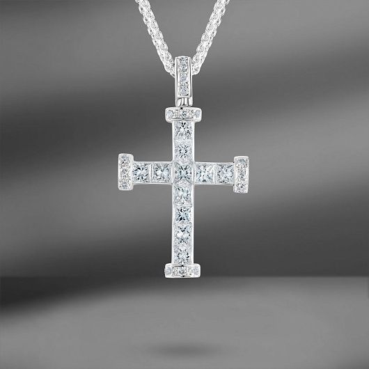 Золотая подвеска крест с бриллиантами 1.89 Ct
