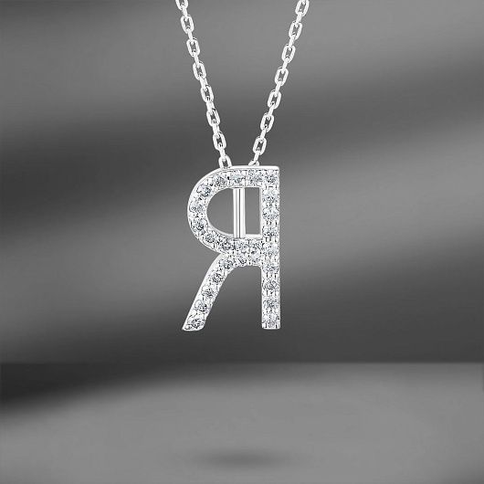 Золотая подвеска R с бриллиантами 0.14 Ct