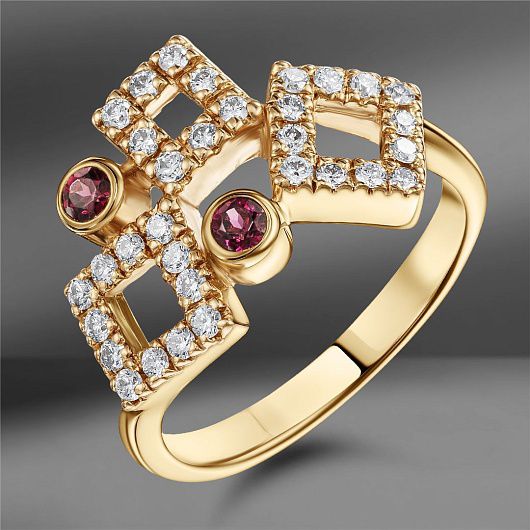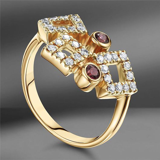 Золотое кольцо с бриллиантами и гранатами