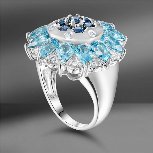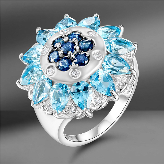 Золотое кольцо с топазами, сапфирами и бриллиантами