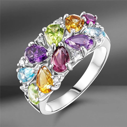 Золотое кольцо с цветными камнями и бриллиантами