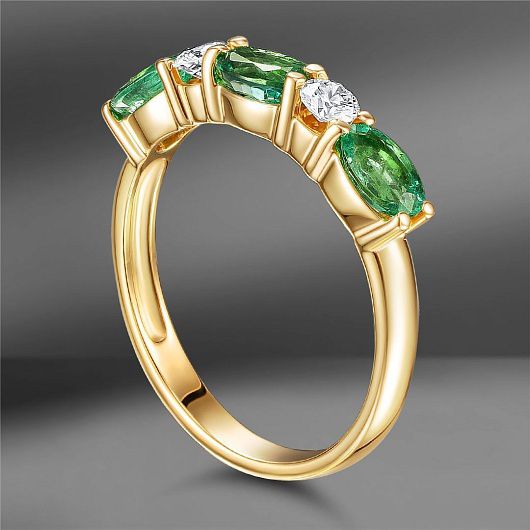 Золотое кольцо Track с изумрудами 1.28 Ct и бриллиантами