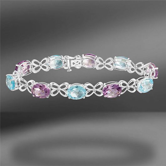 Золотой браслет с цветными камнями и бриллиантами 0.08 Ct