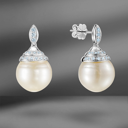 Золотые серьги Emporium Gold с жемчугом и бриллиантами
