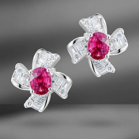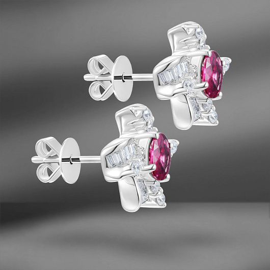 Золотые серьги с рубинами 0.89 Ct и бриллиантами