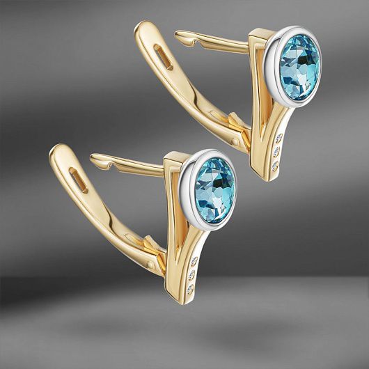 Золотые серьги с топазами 2.29 Ct и бриллиантами
