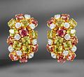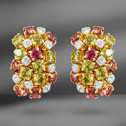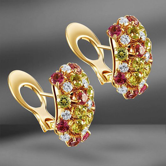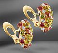 Золотые серьги с цветными камнями и бриллиантами 1.08 Ct