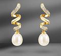 Золотые серьги Emporium Gold с жемчугом и бриллиантами 0.07Ct