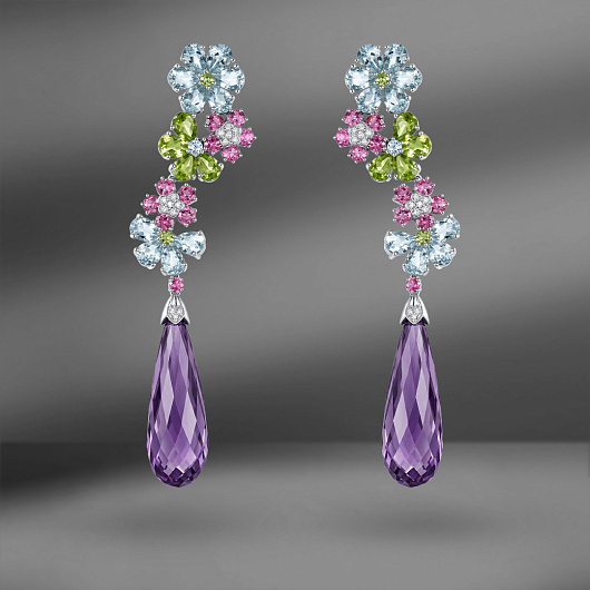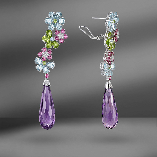 Золотые серьги с цветными камнями Gemtique