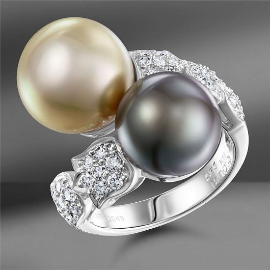 Золотое кольцо с жемчугом и бриллиантами 0.49 Ct