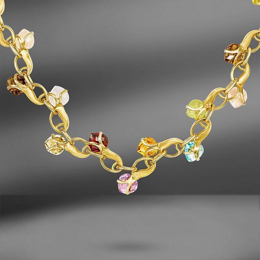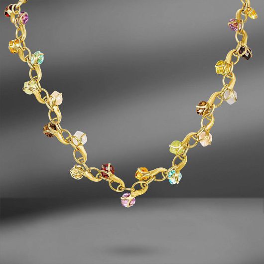 Золотое колье с природными цветными камнями