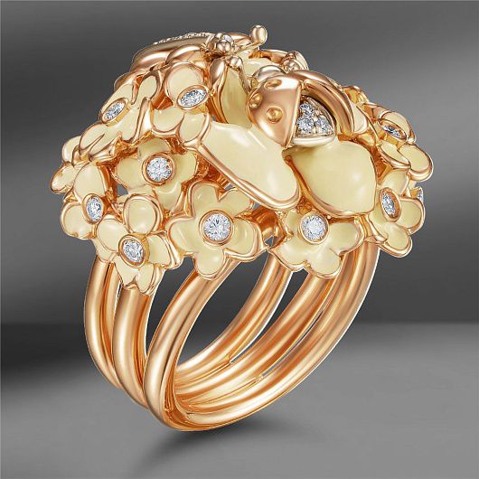 Золотое кольцо с бриллиантами и эмалью