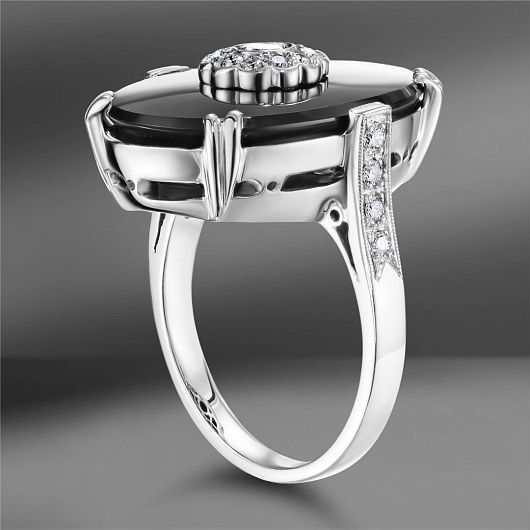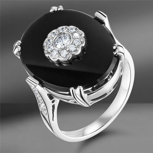 Золотое кольцо с ониксом и бриллиантами