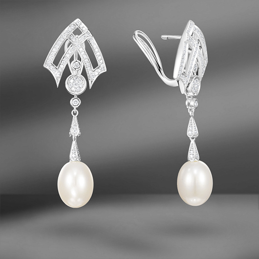 Золотые серьги с жемчугом и бриллиантами 0.83 Ct