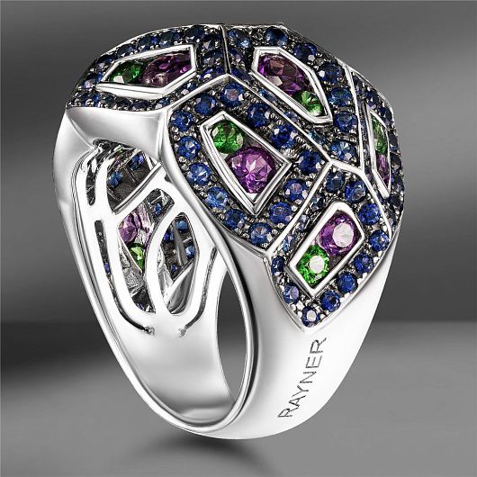 Золотое кольцо Rayner с цветными камнями