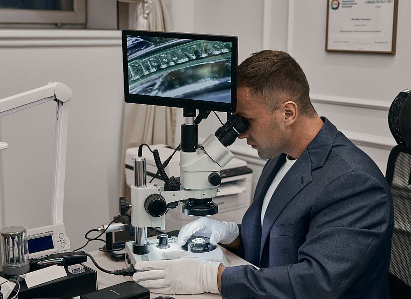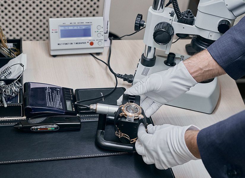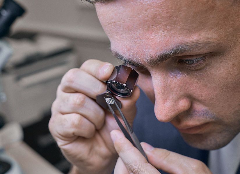 Помимо проверки подлинности рекомендуем проверить все инкрустированные камни. Проверяем каждый бриллиант в паве. Если установлена подделка бренда, то необходимо проверить пробу драгоценного металла, ведь проба может оказаться ниже заявленной. Проверяем пробу с помощью дорогостоящего спектрометра, позволяющего с абсолютной точностью измерять пробу золота, серебра или платины без надпилов и химических реактивов. За свою десятилетнюю практику мы видели «много интересного» и нашего опыта хватает для определения подлинности в 99,9% случаев.
